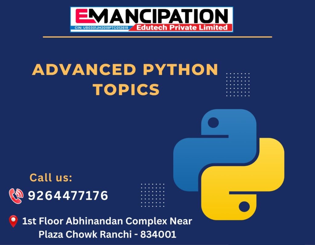 After learning the basics of Python, the next step for developers is to explore advanced topics that improve performance, efficiency, and coding quality. Advanced Python concepts allow developers to write cleaner, faster, and more maintainable code.