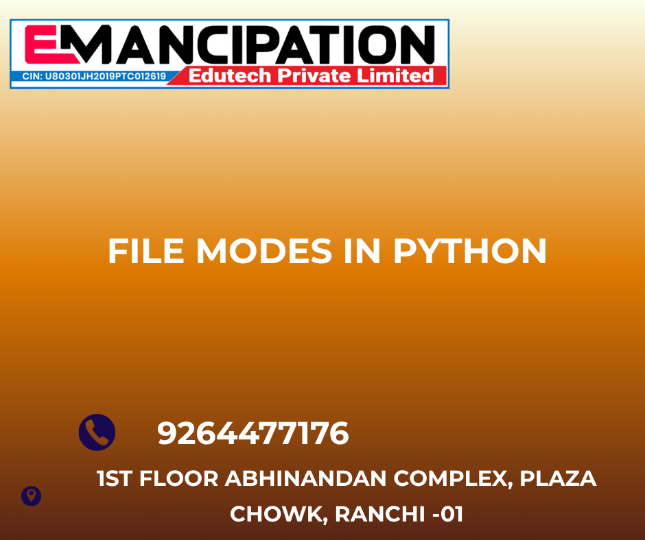 File modes in Python—r, w, and a—are fundamental for file handling. The read mode is used for accessing data, write mode is used for creating or overwriting files, and append mode is used for adding data without losing existing content. By choosing the correct file mode, developers can manage files efficiently and build reliable applications. Mastering file handling is an important step in becoming a skilled Python programmer.